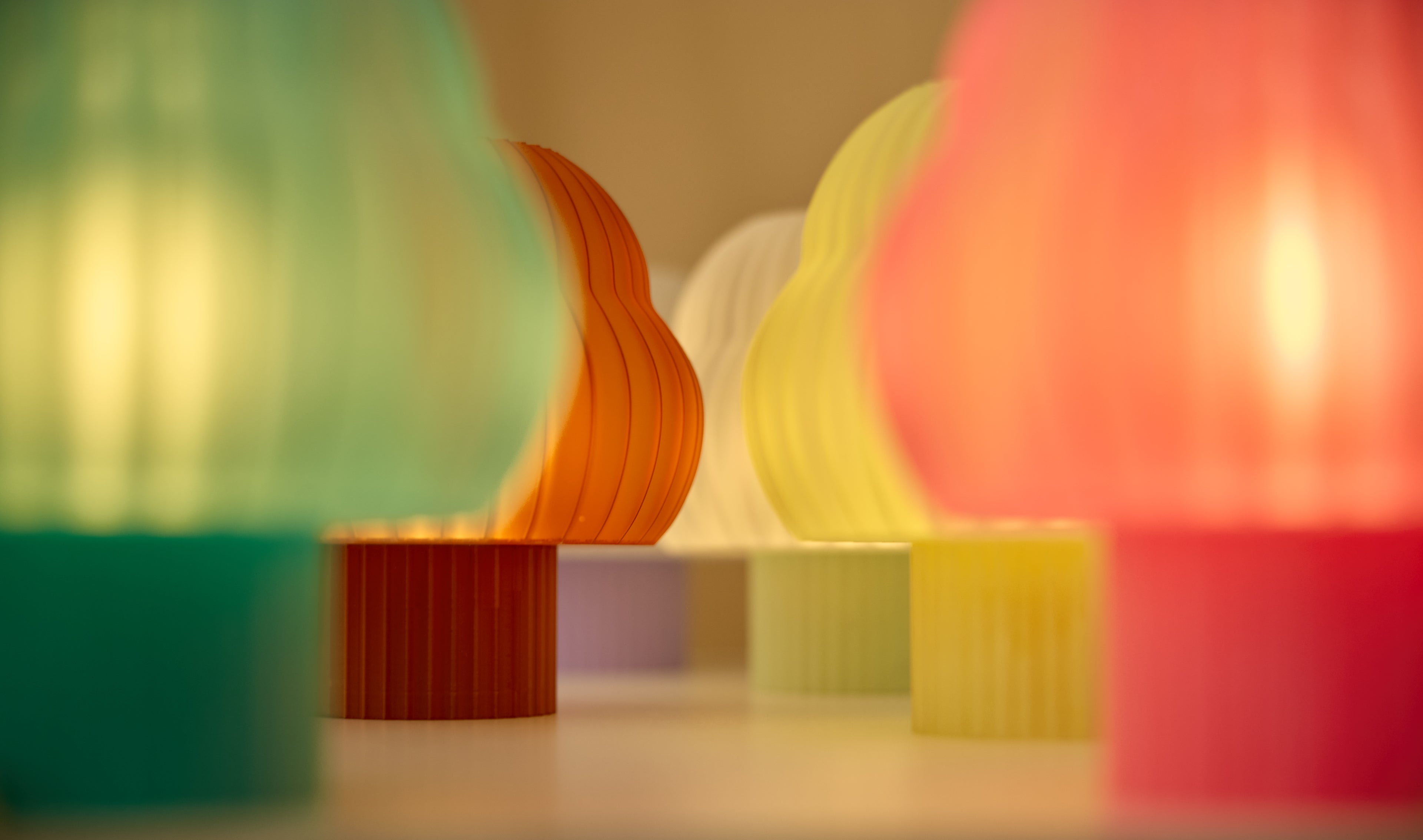 Every Allbloom lamp is 3D printed layer by layer, allowing us to create unique shapes and gentle light diffusion that traditional manufacturing cannot achieve. We use PLA, a plant-based material commonly derived from renewable sources such as sugarcane and corn starch. PLA is biodegradable under industrial composting conditions and has a lower environmental impact than conventional plastics.